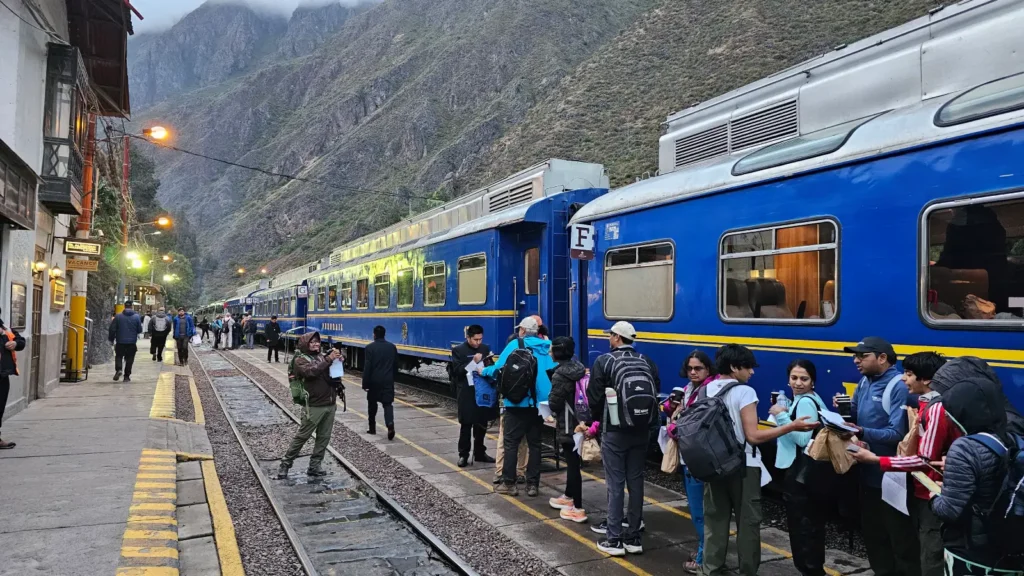 During peak season, most trains leave from Ollantaytambo, so travelers typically begin with a short drive through the Sacred Valley before boarding.